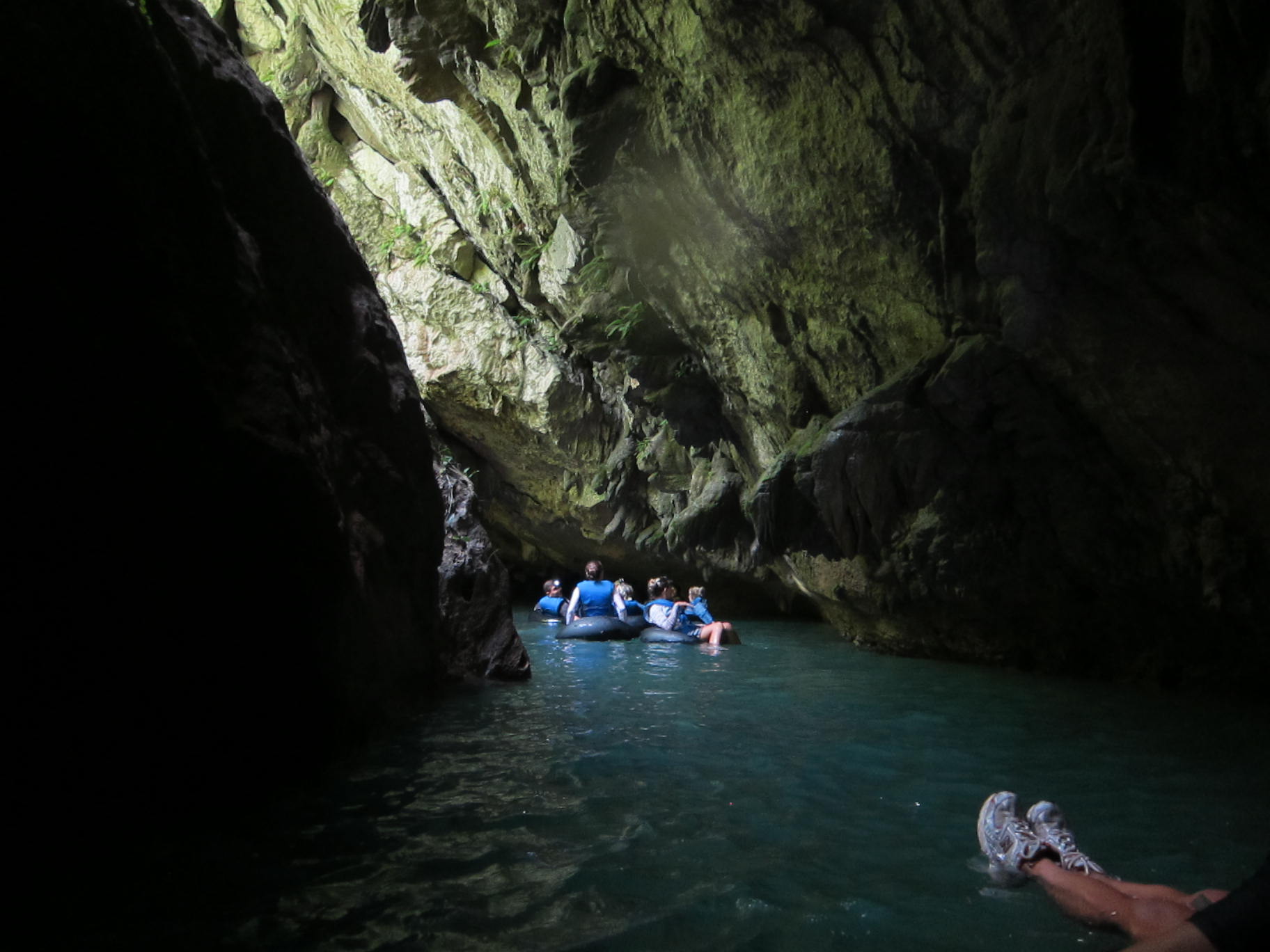 At the site the guides lead the guests through a hike of 20 minutes through the rainforest to the cave entrance. Guides provide you with the tubes needed for this adventure. You will go tubing through soaring caverns as your headlight illuminate the cave walls that glint with crystal formations and stalactites. Guests get to sit back on their tubes and enjoy the ride while observing different magnificent stalactite, stalagmite, columns rock formation and also a beautiful water fall in the huge cave system. Cave tubing provides thrills to suit nearly any age and fitness level.